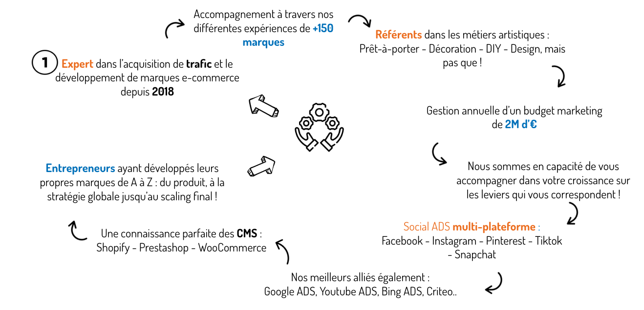 Une association entre maîtrise du Social Ads et conseils E-commerce, pour des investissements publicitaires rentables et un tunnel de conversion optimisé pour maximiser vos performances.